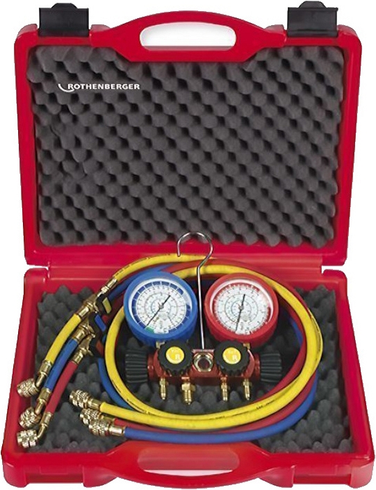 - Четырехпозиционный аналоговый манометрический коллектор для хладагентов R410A, R32 Rothenberger 5/16 SAE: