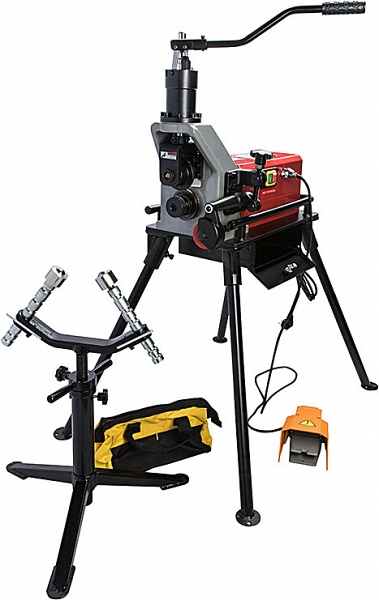 Электрический гидравлический желобонакатчик Rotorica Roller GM12S (Роторика Роллер ГМ12С) с ручным гидравлическим насосом – грувлочный желобонакатный станок с ручной гидравлической подачей накатывающего ролика для накатки канавок (желобков) на стальных трубах из углеродистой стали Ø 1" – 8" (25 – 200 мм) sch. 10/40 и Ø 10" – 12" (250 – 300 мм) sch. 10/20, толщиной стенки 2,8 – 8 мм, нержавеющих стальных трубах из нержавеющей стали Ø 1" – 8" (25 – 200 мм) sch. 10/20, толщиной стенки до 6 мм при монтаже водопроводных, отопительных, пожарных и промышленных трубопроводов без применения сварки.